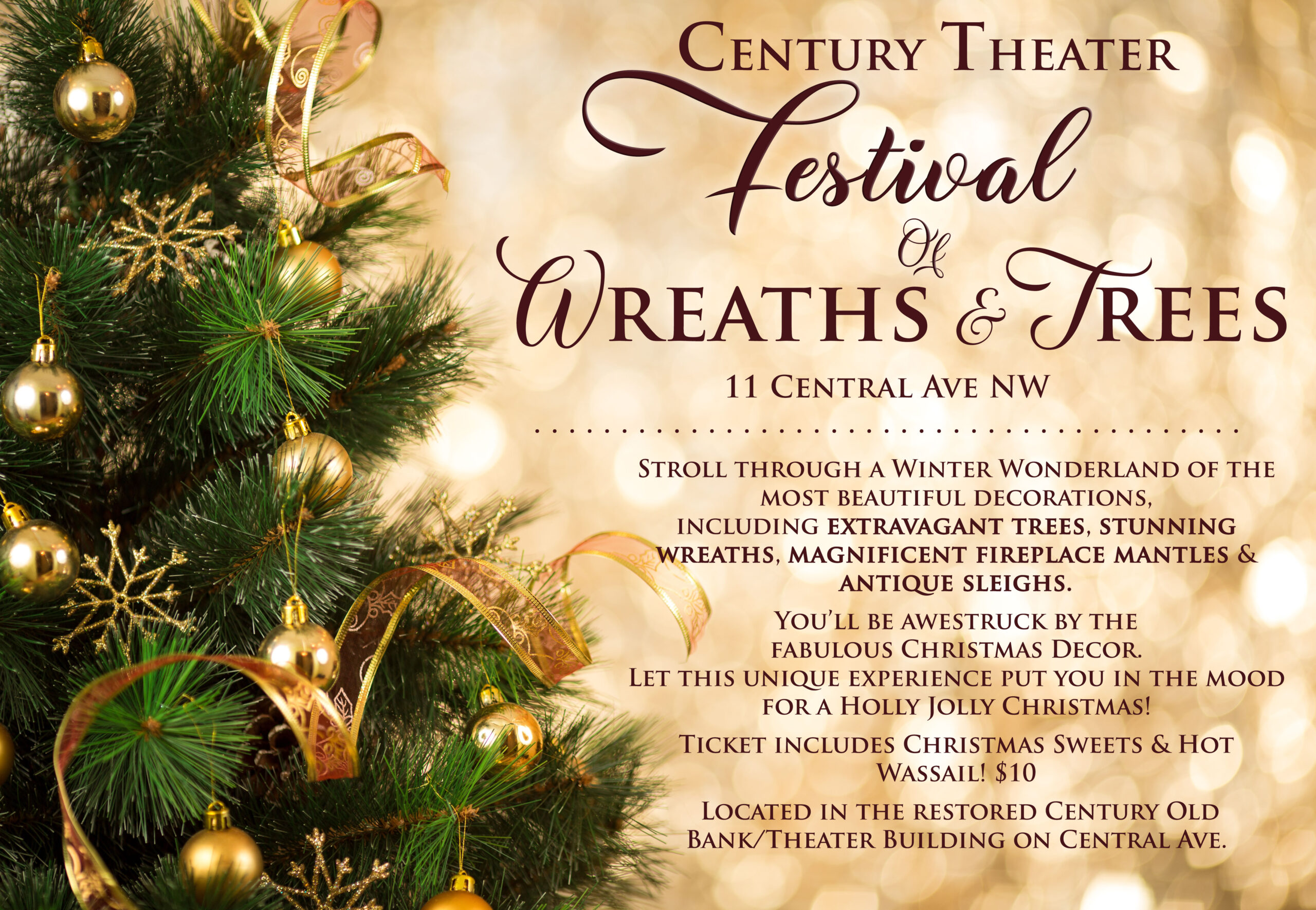 Christmas tree background with gold blurred light